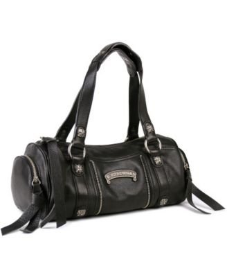 The "Prague" Barrel Satchel from B. makowsky is loaded with plentiful stylish accents.
